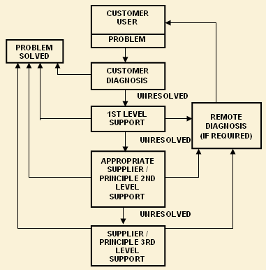 Customer technical personnel can further optimize the cycle by providing an initial diagnosis in terms of recording and relaying fault symptoms as explicit as possible, executing appropriate basic user diagnostic routine, and collate evidence such as data and printouts.